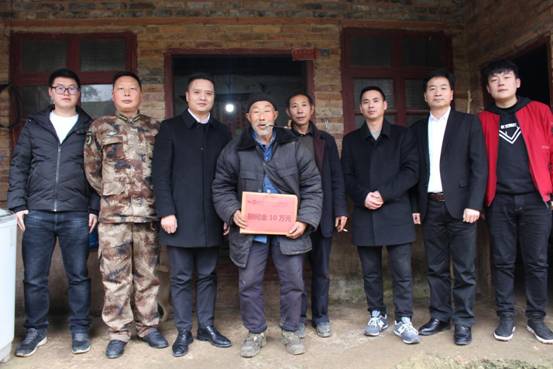 2019年1月19日下午,貴州陟翔保安總公司總經(jīng)理馮波、副總經(jīng)理陳春生攜同下屬保安公司總經(jīng)理邱元波、銅仁一鼎爆破公司副總經(jīng)理段麗莎、科技公司副總經(jīng)理馮偉等同志頂著刺骨的寒風(fēng),前往貴州省凱里市黃平縣舊州鎮(zhèn)楊花沖對當(dāng)?shù)匾回毨窬彝ミM(jìn)行幫扶慰問。