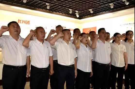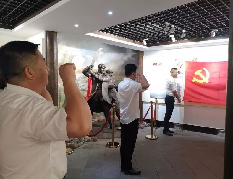在陳列館內(nèi),陳春生書記帶領(lǐng)全體黨員、入黨積極分子面對黨旗重溫了入黨誓詞,鏗鏘的誓言響徹在紀(jì)念館內(nèi),使每位黨員再一次接受了心靈的洗禮,堅定了初心,牢記了使命。