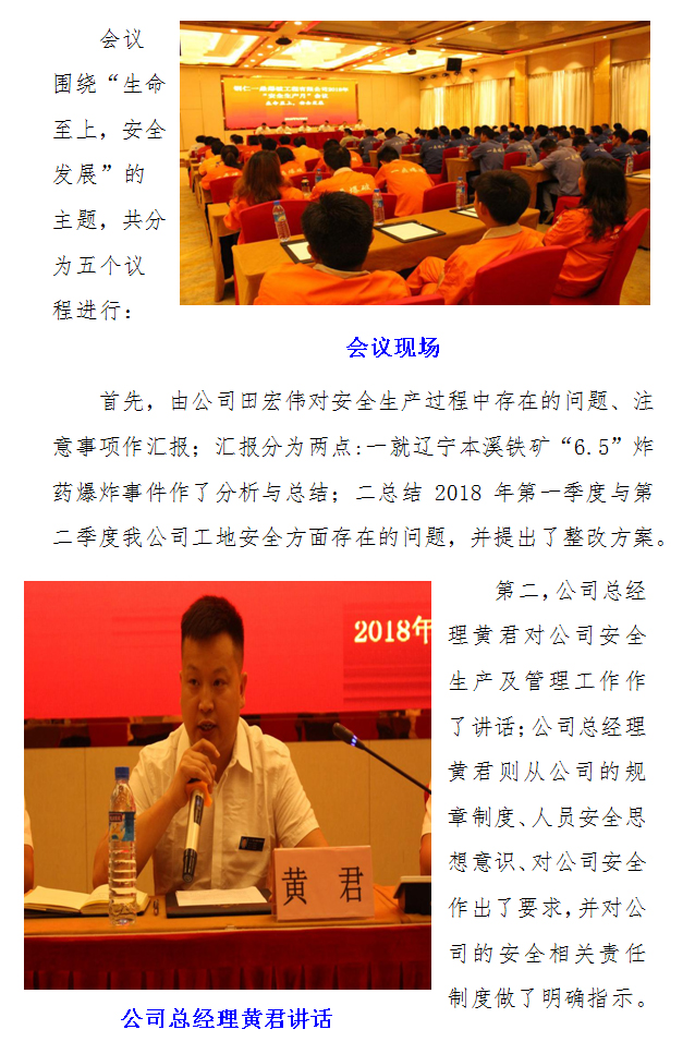 > 銅仁一鼎爆破工程有限公司2018年 “安全生產(chǎn)月”會議 生命至上,安全發(fā)展