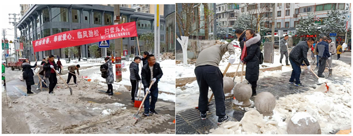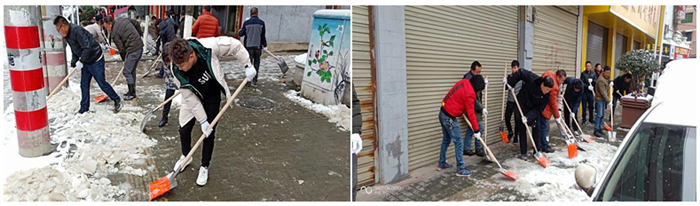 上午10點(diǎn),員工們頂著風(fēng)雪,陸續(xù)來(lái)到公司。在項(xiàng)目部張總的帶領(lǐng)下,大家不畏嚴(yán)寒,揮舞著鐵鍬開(kāi)始對(duì)縣城風(fēng)雨橋附近的人行道及斑馬線的積雪和結(jié)冰進(jìn)行清掃。大家你追我趕,齊心協(xié)力,配合默契,鏟的鏟、推的推、掃的掃,干的熱火朝天,不亦樂(lè)乎,忙碌的身影構(gòu)成了一道亮麗的風(fēng)景線。雖然室外溫度很低,但大家勞動(dòng)的熱情和團(tuán)結(jié)的力量讓這個(gè)冬日變得格外溫暖。